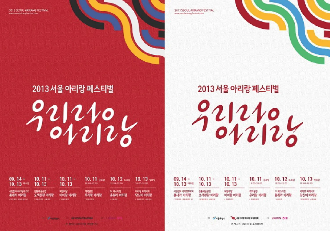 2012년 아리랑이 유네스코 세계인류무형유산으로 지정된 것을 기념하기 위해 아리랑을 주제로 대한민국의 심장이자 역사와 문화가 공존하는 광화문 광장과 서울광장에서 한바탕 축제를 펼쳐보이면 어떨까라는 아이디어에서 서울 아리랑 페스티벌이 기획되었고 이를 명쾌하게 전달할 브랜드로 "우리랑아리랑"이 개발되었습니다.페스티벌의 핵심 메시지인 '누구나 즐기는 아리랑'을 표현하기 위한 로고 디자인 개발에 집중하였고 최종적으로 어느 방향에서 보아도 똑같은 모습을 가진 글꼴을 통해 우리랑 아리랑 디자인을 제안했습니다.