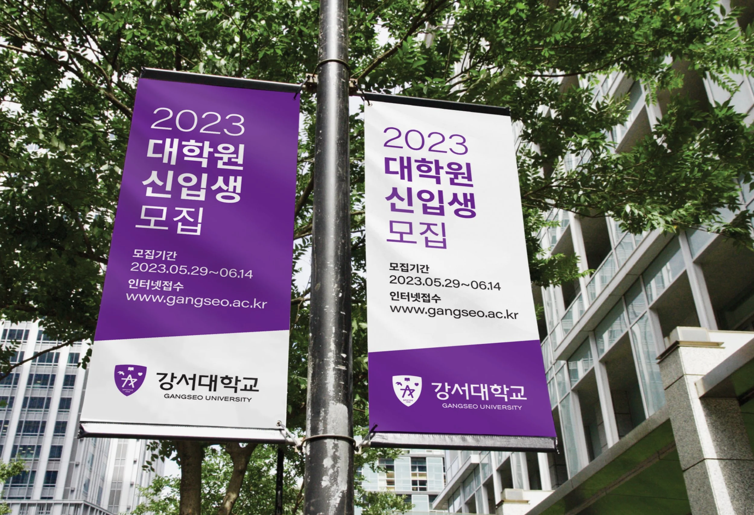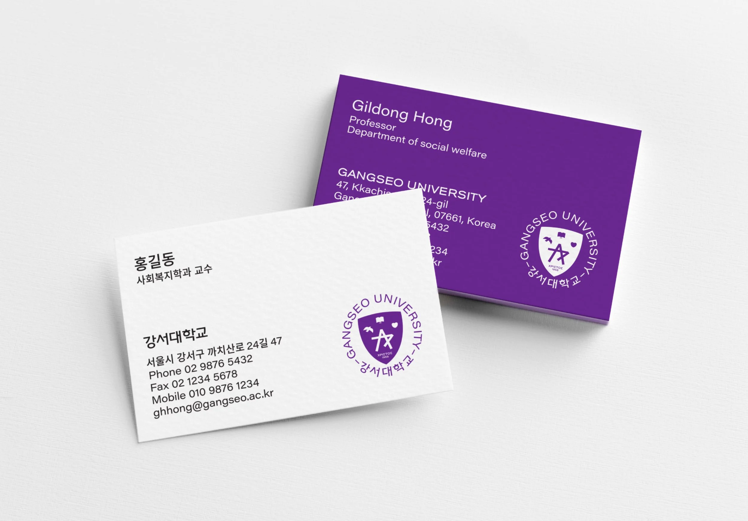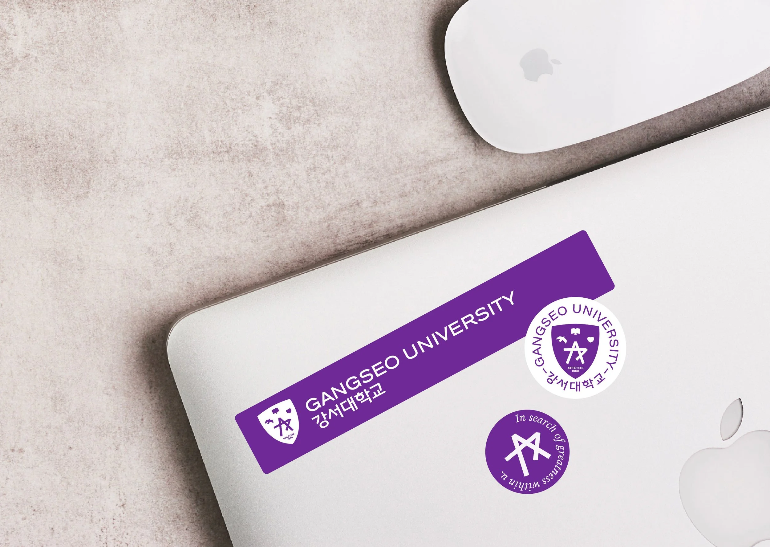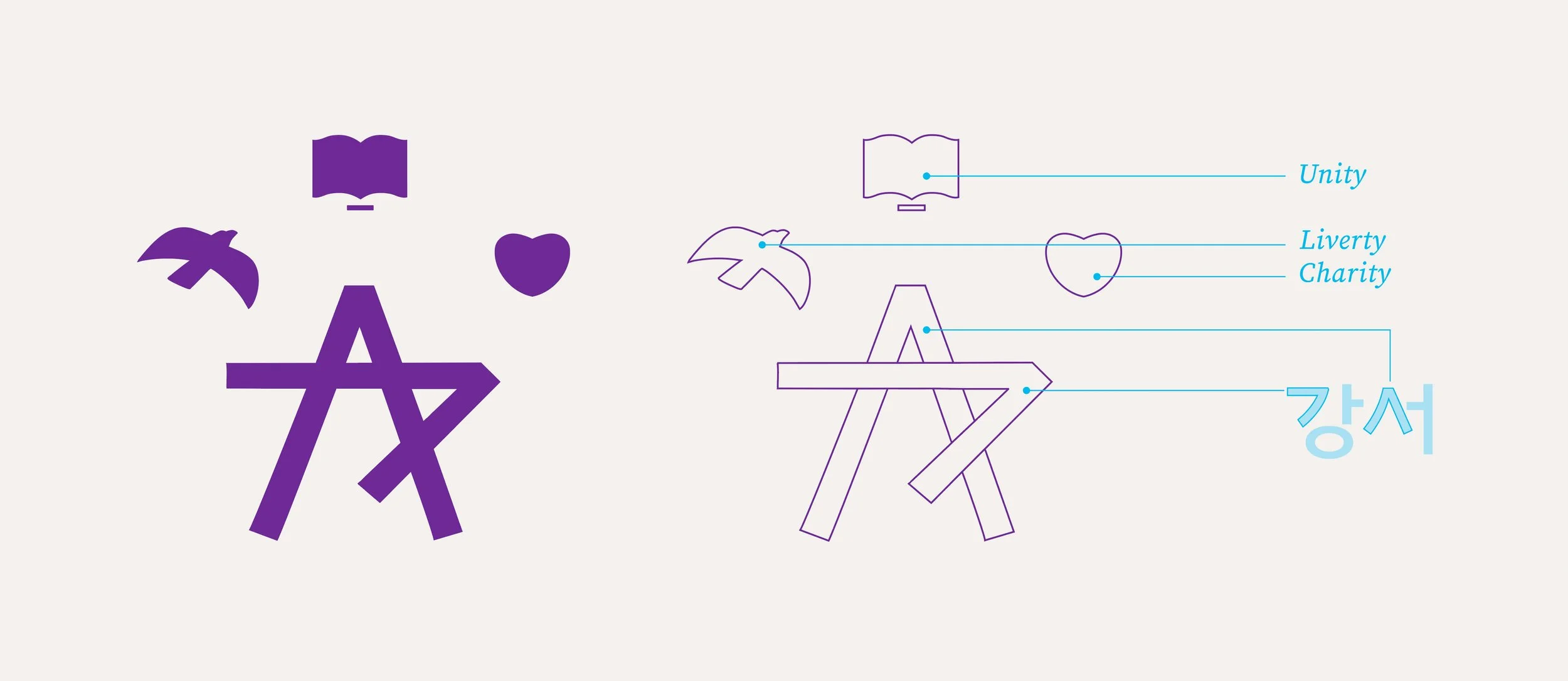 강서대학교의 UI는 ‘일치’, ‘자유’, ‘사랑’의 기초한 지식과 지혜로 깨우쳐 마침내 발견하게 되는 내 안의 ‘별(Greatness)’을 의미합니다. 일치(진리), 자유, 사랑의 각각 상징하는 책, 새, 하트의 상징 아래 강서의 초성인 ‘ㄱ’과 ‘ㅅ’이 만나 별을 이룹니다. 방패는 이러한 가치를 수호함을 의미합니다. UI의 컬러는 본질에 일치(White), 비본질에 자유(Blue), 매사에는 사랑(Red)을 상징하는 컬러가 합쳐져 탄생한 보라색(Purple)을 사용합니다.